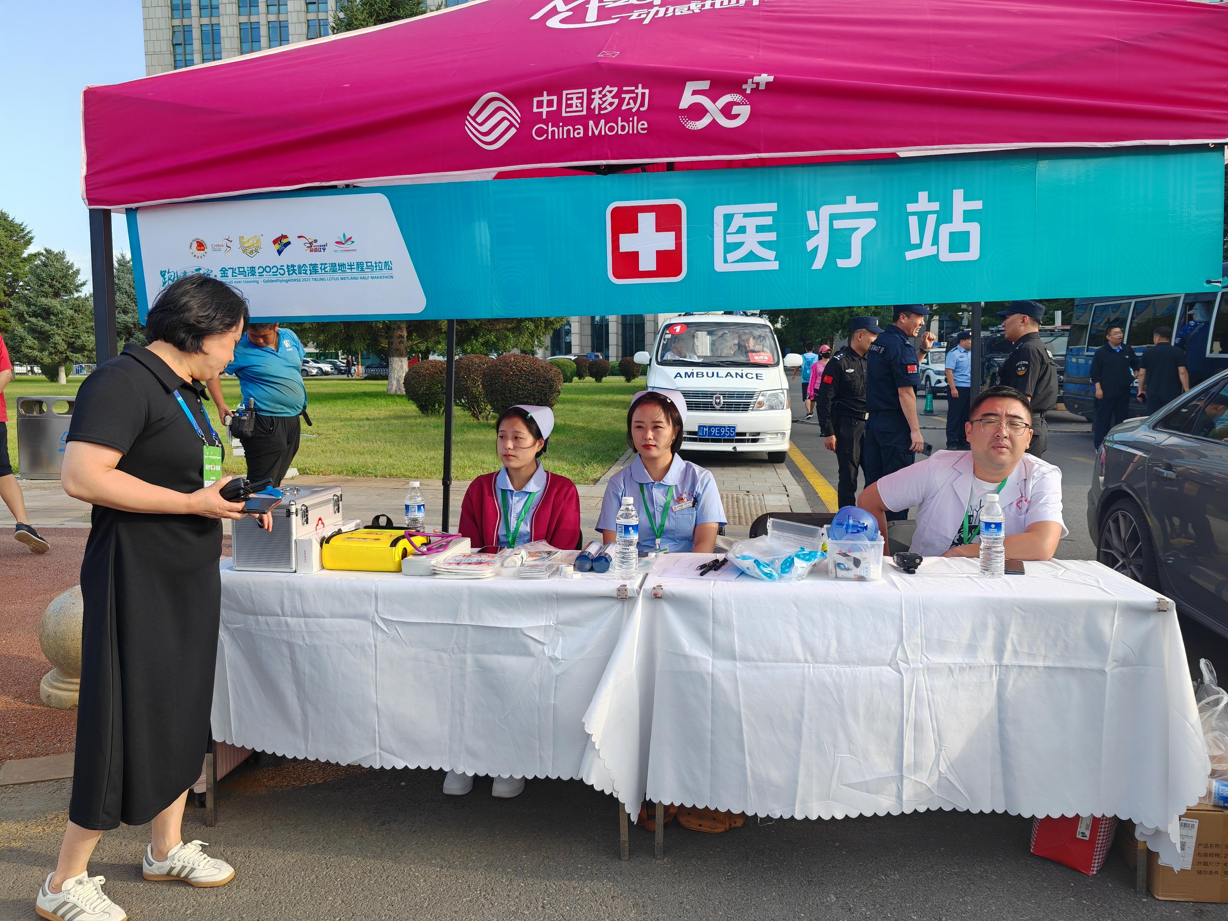 本次赛事医疗保障工作建立市县联动保障体系,组建以铁岭县卫健局局长为组长的赛事医疗卫生保障工作领导小组,制作医疗保障工作方案,在市卫健委、市(区)级医疗机构的大力支持下,明确13辆救护车、13个医疗站、21组移动AED、2家马拉松比赛定点救治医院的精准布防。建立“理论筑基+情景砺剑+压力淬炼”三维培训体系,8月开展心肺复苏、AED操作等技能“淬火”,135名保障人员全员通过“理论笔试+盲演实操+突发处置”考核。9月5日组织“实战推演”,模拟心搏骤停、群体中暑等危情,铸就“召之即来、来之能战”的保障尖兵。