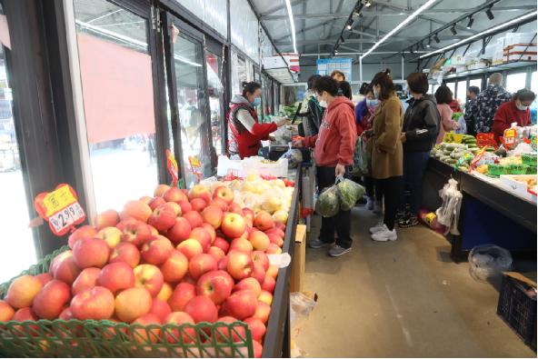 3月27日,在银州区一家大型超市内,菜、蛋、奶、粮油等生活必需品供应充足,正在选购食品的刘女士表示,品种齐全的果蔬、肉品令她感到十分安心,“大型超市里肉类菜类还是挺充足的,随吃随买,不用多囤货。”超市负责人介绍,超市从本地直接采购蔬菜,其他各类食品储备也十分充足,能够满足市民日常需求。